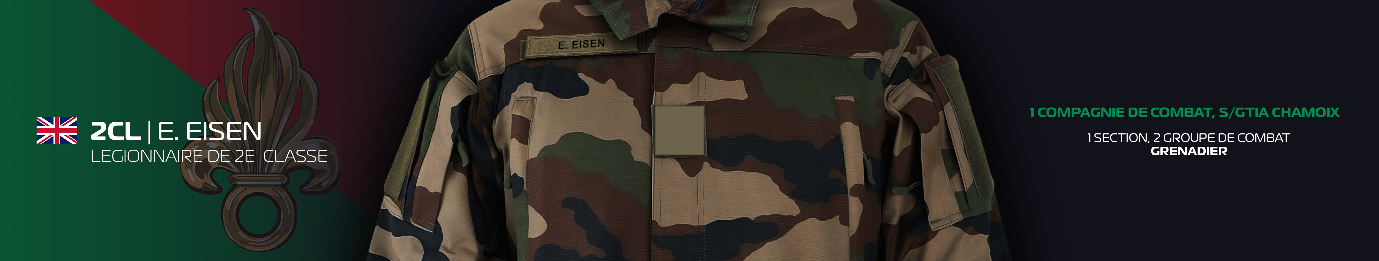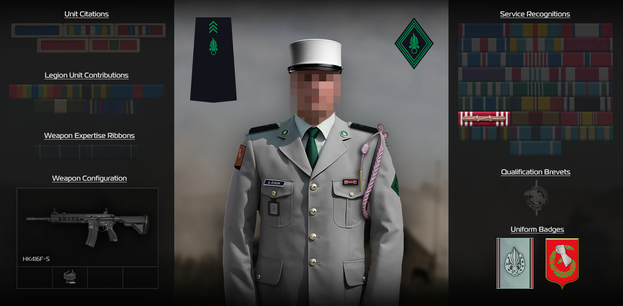 Foreign Legion Command presents the Good Conduct MedalRecipient: Légionnaire de 2ᵉ classe E. Eisen Foreign Legion Command has recognised your performance, excellence, dedication, loyalty and commitment to the Legion. Date Awarded: Aug 8, 2025 Signed by: Capitaine Aaron Hughes, Commander of GTIA Foreign Legion