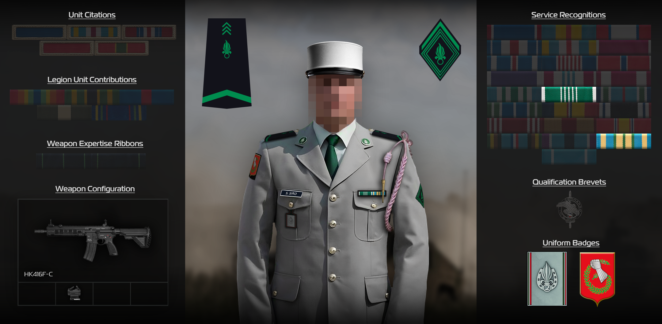 Foreign Legion Command presents the Legion CommendationRecipient: Legionnaire de 1ʳᵉ Classe S. Pregno Foreign Legion Command has recognised your performance, excellence, dedication, loyalty and commitment to the Legion. Date Awarded: May 22, 2025 Signed by: Capitaine Aaron Hughes, Commander of GTIA Foreign Legion