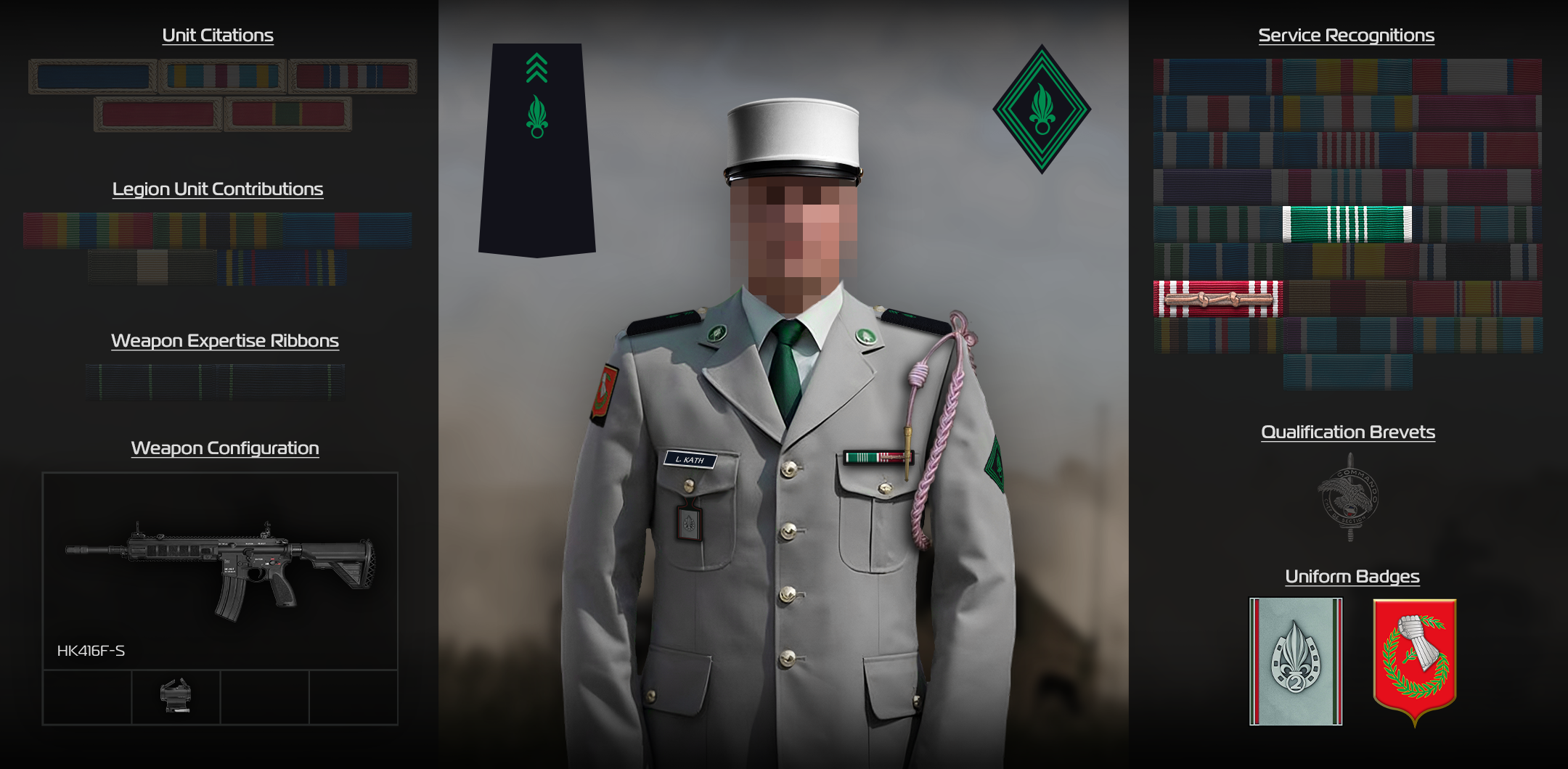 Foreign Legion Command presents the Legion CommendationRecipient: Légionnaire de 2ᵉ classe L. Kath Foreign Legion Command has recognised your performance, excellence, dedication, loyalty and commitment to the Legion. Date Awarded: May 22, 2025 Signed by: Capitaine Aaron Hughes, Commander of GTIA Foreign Legion