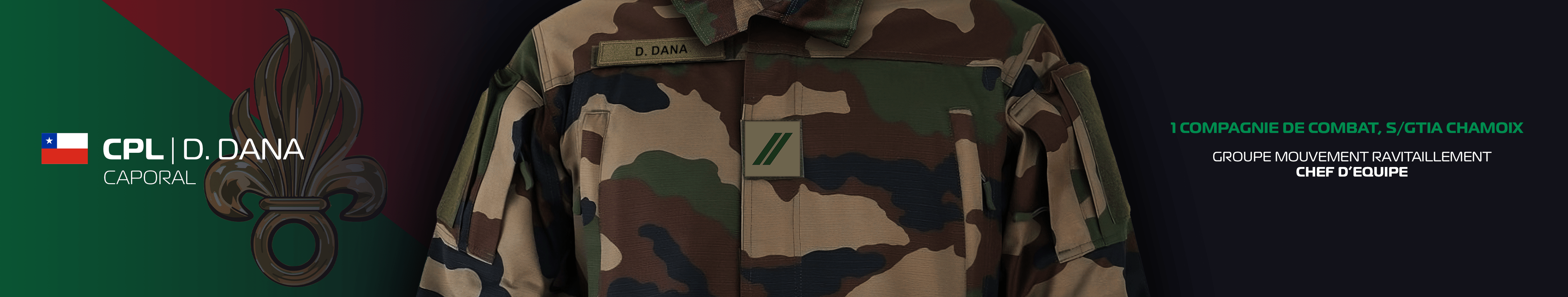 Foreign Legion Command presents the Good Conduct MedalRecipient: Caporal D. Dana Foreign Legion Command has recognised your performance, excellence, dedication, loyalty and commitment to the Legion. Date Awarded: Aug 8, 2025 Signed by: Capitaine Aaron Hughes, Commander of GTIA Foreign Legion
