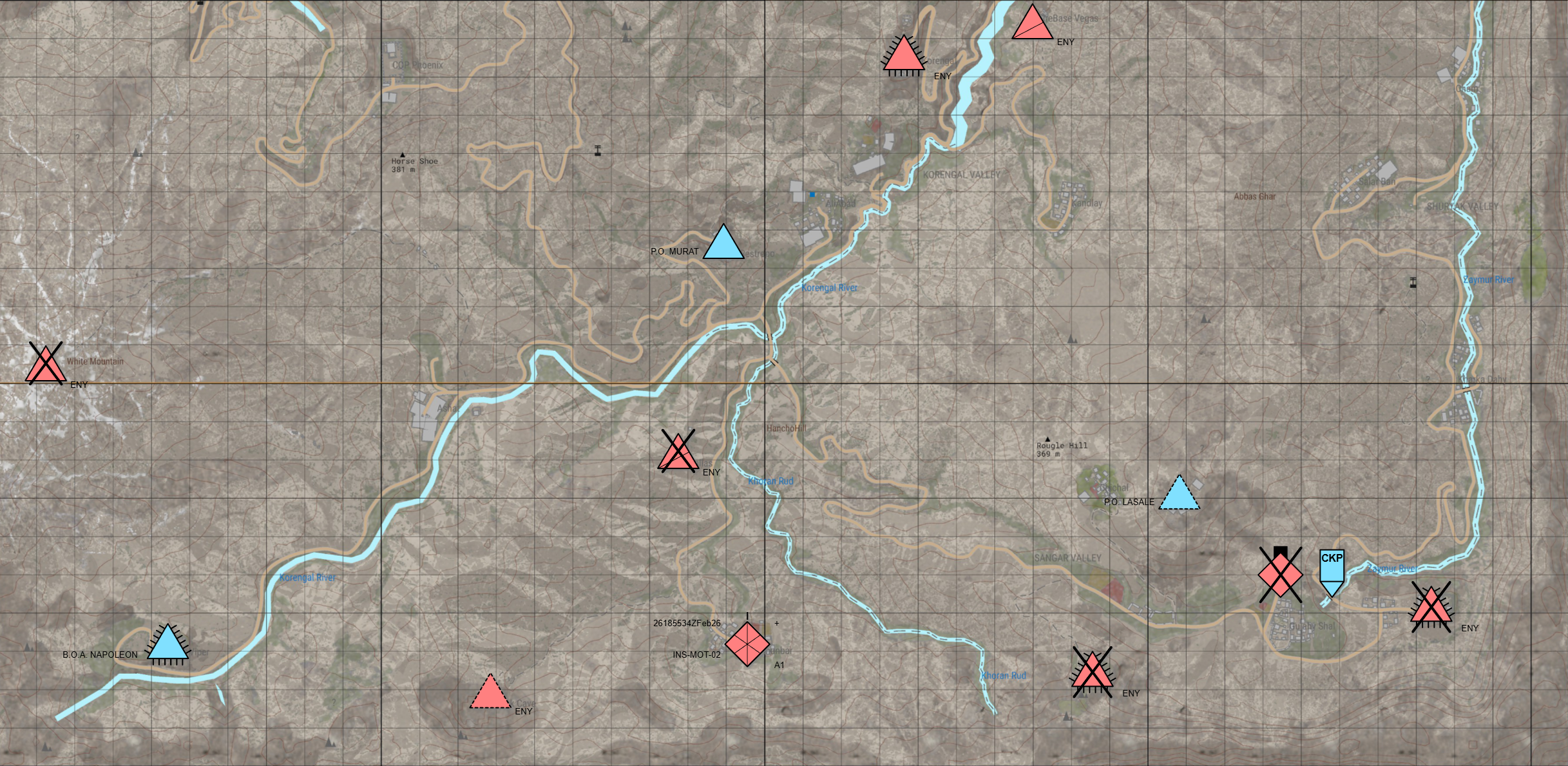 Following the destruction of the insurgent mechanized battalion in the Sangar Valley, the Eastern flank (Zaymur River) is stable. However, an insurgent pocket remains in the Khoran Rud valley, specifically in and around the village of KHUNBAR (bypassed during OP 03). Neutralizing this pocket will completely secure the southernmost grid sector (Korengal River - Khoran Rud - Zaymur River), eliminating the threat of a southern flank attack on our MSRs.