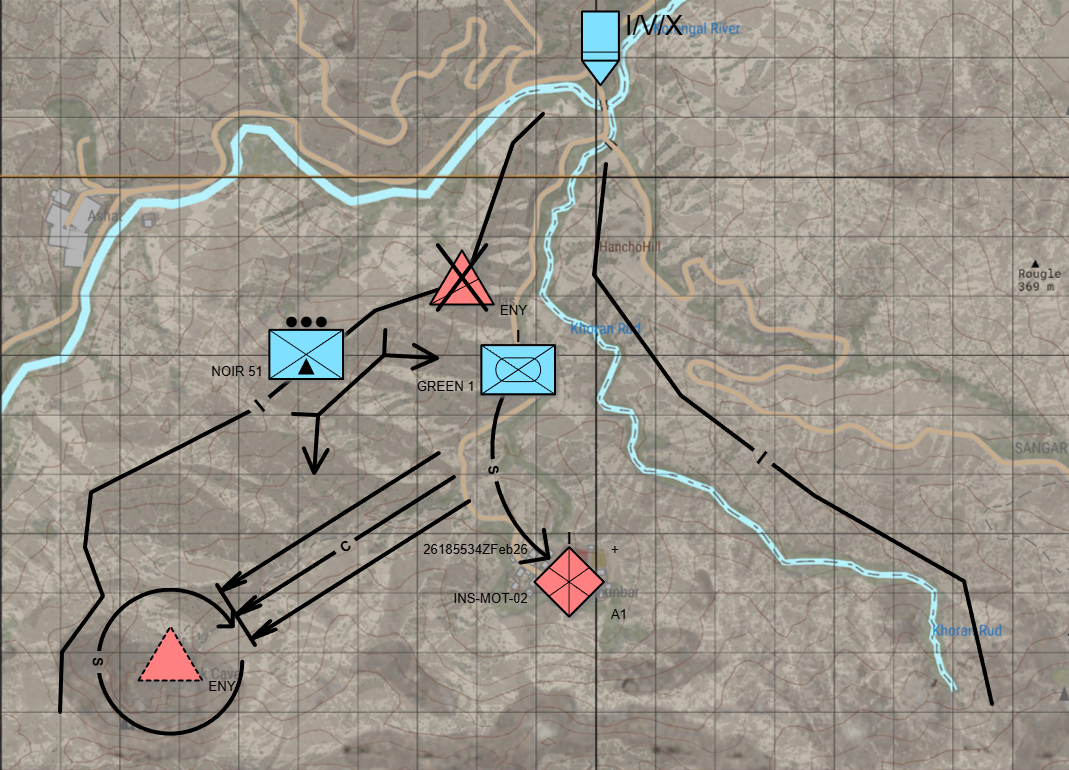 Assault:GREEN 1 will advance into the Khoran Rud valley.